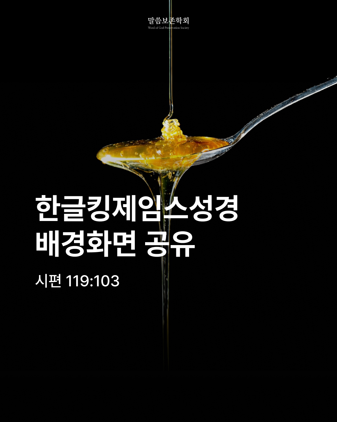 시편 119편 103절 말씀 배경화면입니다. 말씀보존학회 네이버 블로그에 접속하면 PC/모바일 모두 무료로 다운로드 받을 수 있습니다.